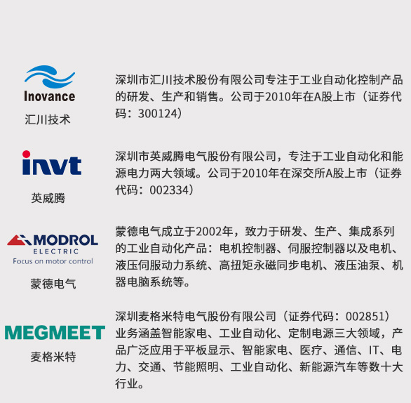 合康、匯川、英威騰、智光、希望森蘭
