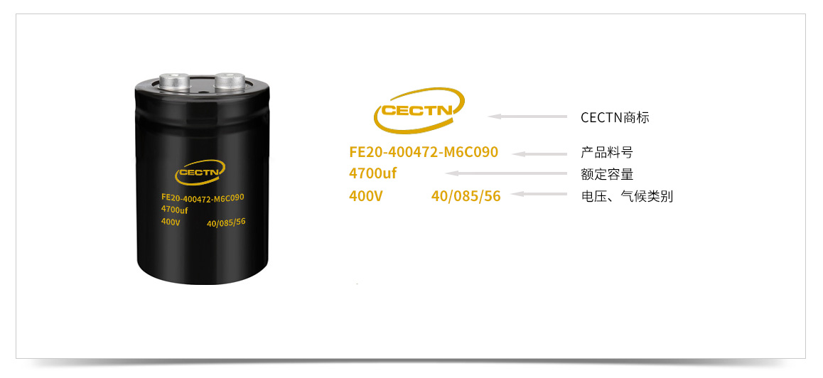 ? ? ? ? 鋁電解電容的料號(hào)又兩個(gè)部分組成,上面是CECTN商標(biāo),下面為電解電容型號(hào),包含訂購(gòu)代碼、電壓、容量、溫度、壽命、安裝方式等信息。詳細(xì)了解請(qǐng)點(diǎn)擊進(jìn)入《凱琦佳鋁電解電容料號(hào)說(shuō)明》頁(yè)面。