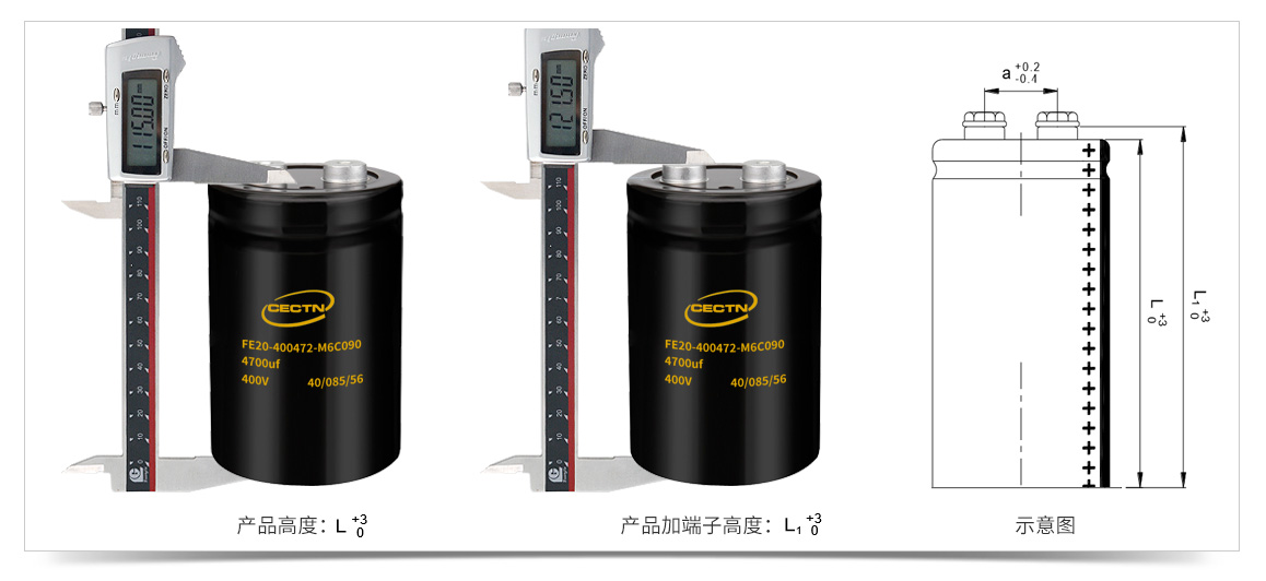400V4700uF螺栓型鋁電解電容高度為115mm,加上端子高度為121.5mm。