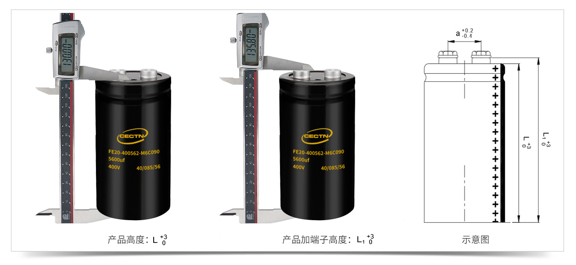 400V5600uF螺栓型鋁電解電容高度為130mm,加上端子高度為135.8mm。